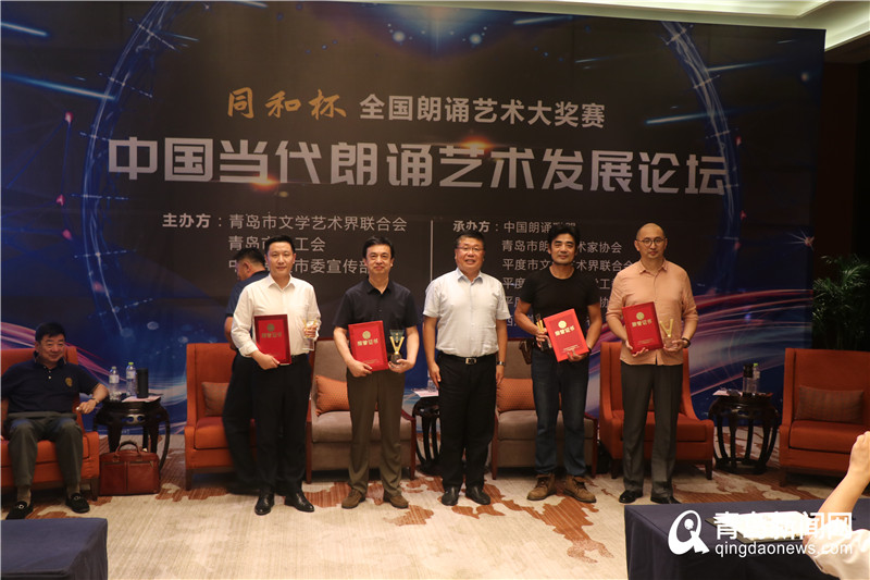 最后,青岛朗诵艺术家协会主席张晋青为本次论坛做结束总结。平度市政府副市长于敬军为中国传媒大学孙良博士、中国朗诵联盟李进主席、平度市文联李振波主席、平度朗诵艺术家协会张坤主席四位老师颁发特等奖。