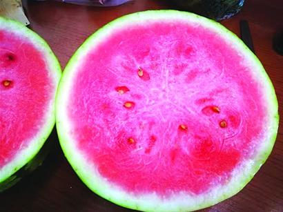 在“太空西瓜”育种基地,青岛市农业科学院专家对工作人员进行了详细的培育指导。技术人员对其中一个“太空西瓜”进行了糖度测试,测试仪上清晰地显示出13.1度,而同一品种的普通西瓜糖度只有10.9度。这种西瓜吃起来更加汁甜黏手。