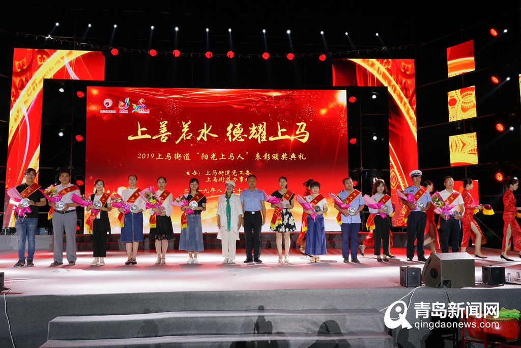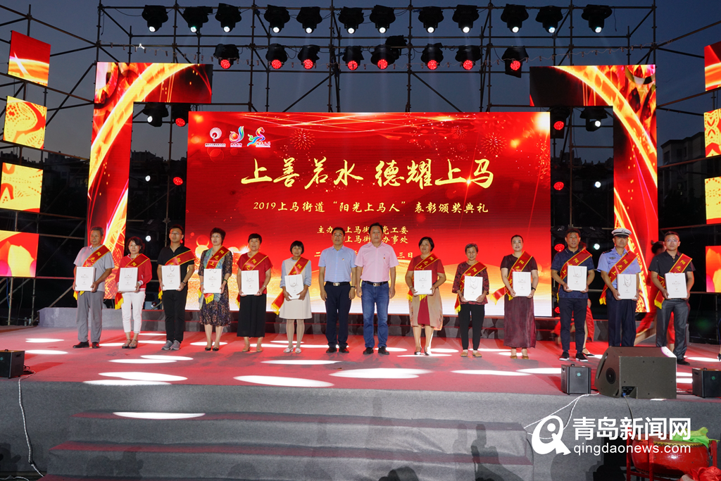 青岛新闻网8月23日讯(记者 姜红翠)上善若水 德耀上马——2019上马街道“阳光上马人”表彰颁奖典礼8月23日晚在城阳六中操场盛大举行,历经数月评选产生的88位上马街道道德模范人物走上舞台,领取荣誉奖牌、《阳光上马人纪念邮册》及小说,2019年“阳光上马人”评选迎来万众瞩目的欢聚庆典。