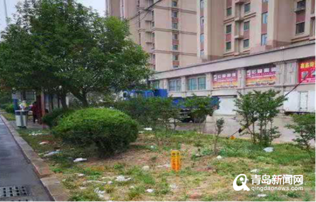 2.胶州市北京路丞相府小区网点前绿化带,垃圾较多。