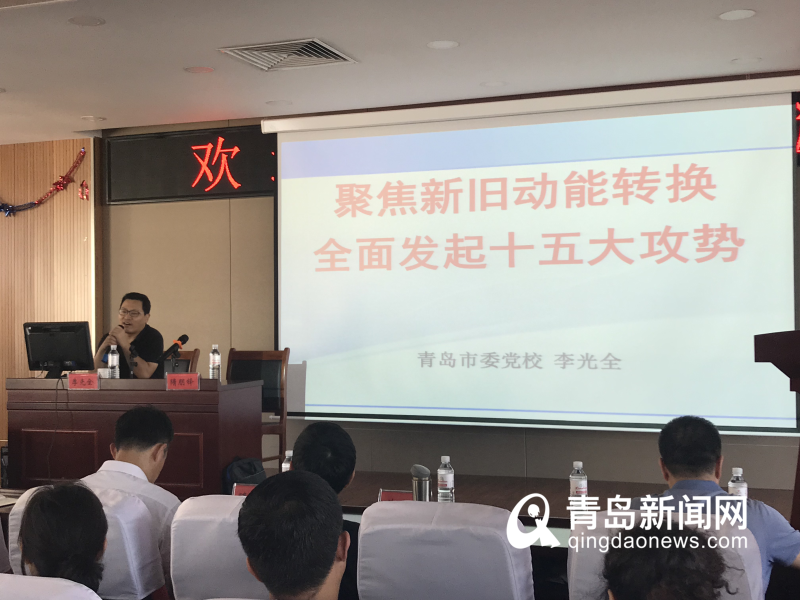青岛新闻网8月28日讯 8月28日下午,市北区商务局联合大港街道办事处组织开展“双报道”活动,邀请市委党校教授李光全博士作了《聚焦新旧动能转换全面发起十五大攻势》专题讲座,区商务局、大港街道党员干部代表参会听讲。