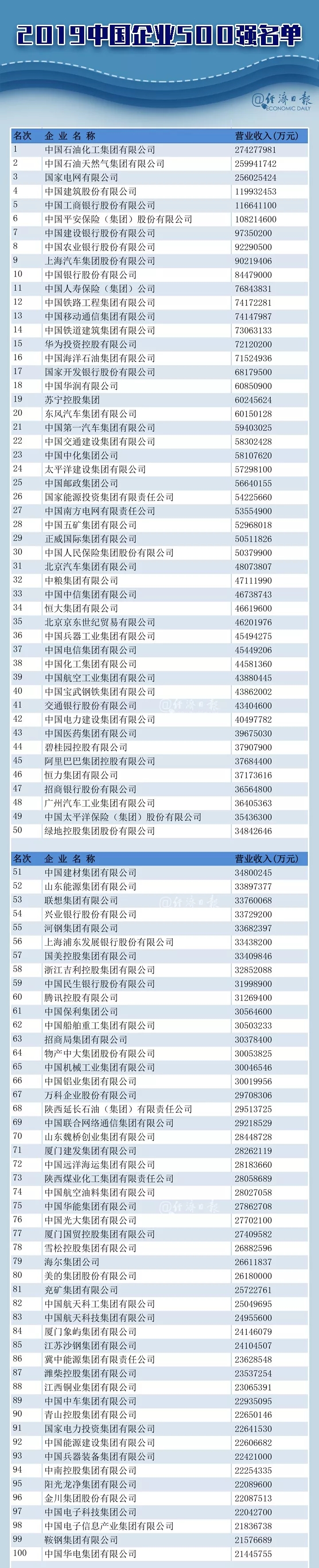 今天(9月1日),中国企业联合会、中国企业家协会发布2019中国企业500强榜单,共涉及76个行业,其中制造业企业入围244家,服务业企业入围173家。194家企业营业收入超过1000亿元,进入“千亿俱乐部”。青岛企业海尔、中车、海信、青建、新华锦,榜上有名。