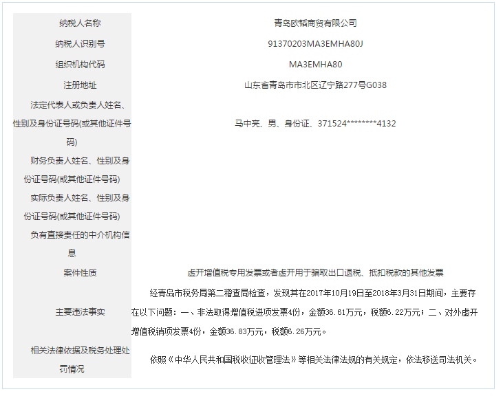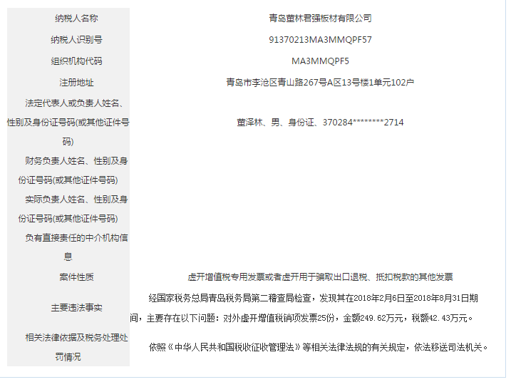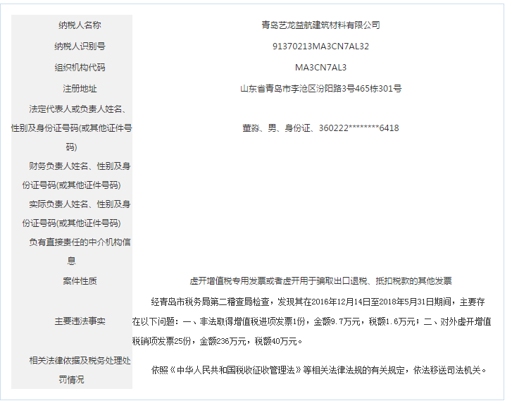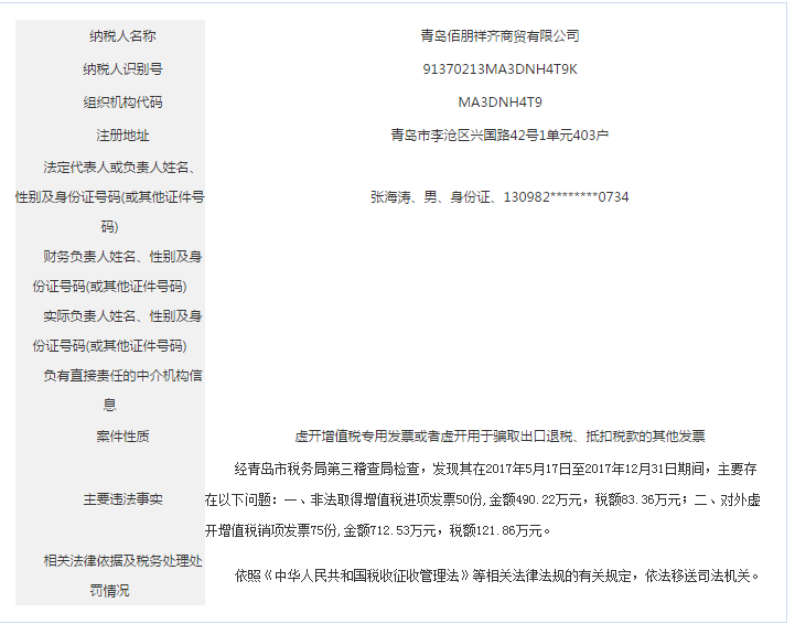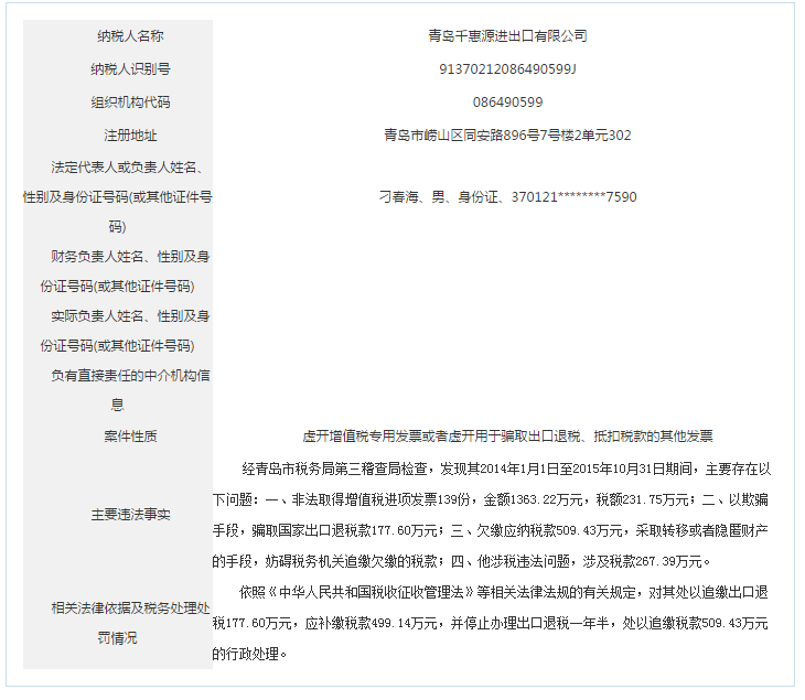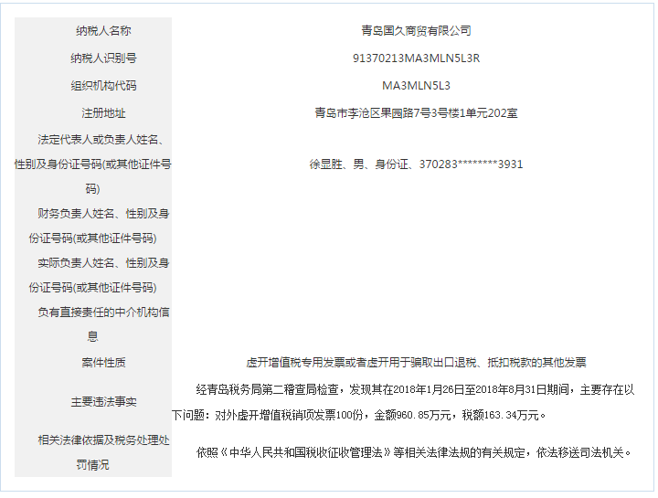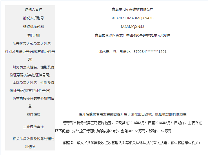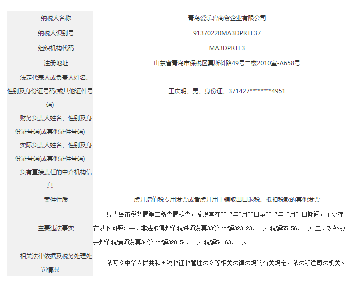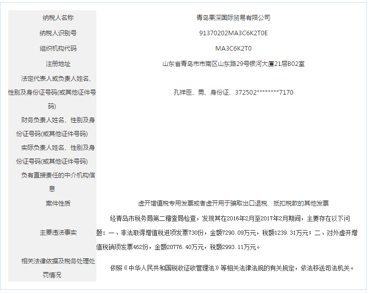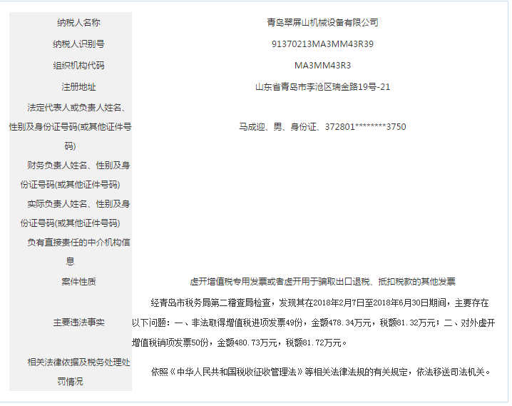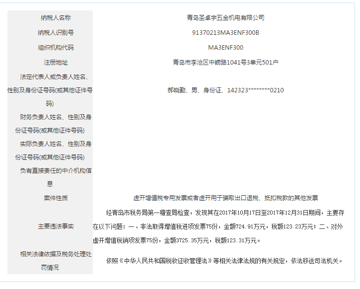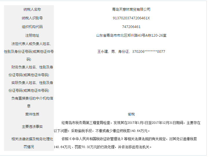 青岛税务局公告青岛鑫宝来钢铁有限公司等59起重大税收违法案件