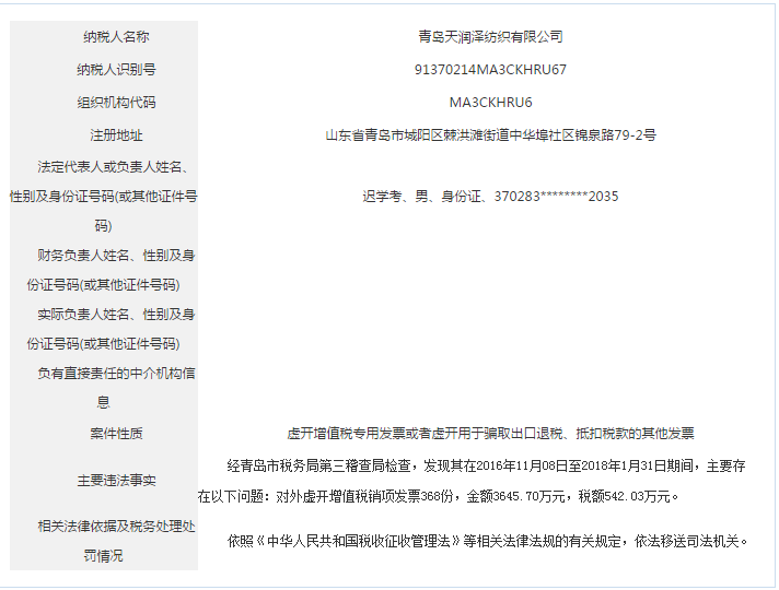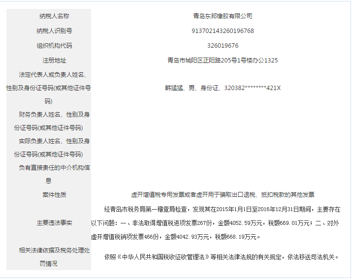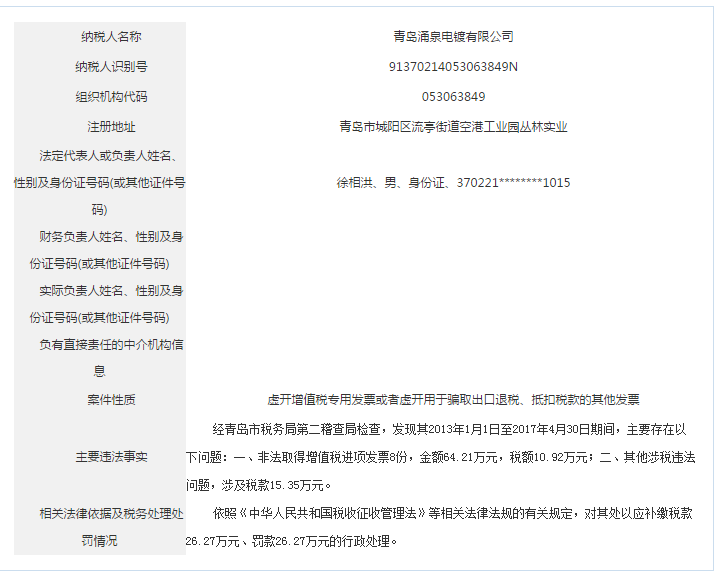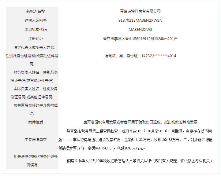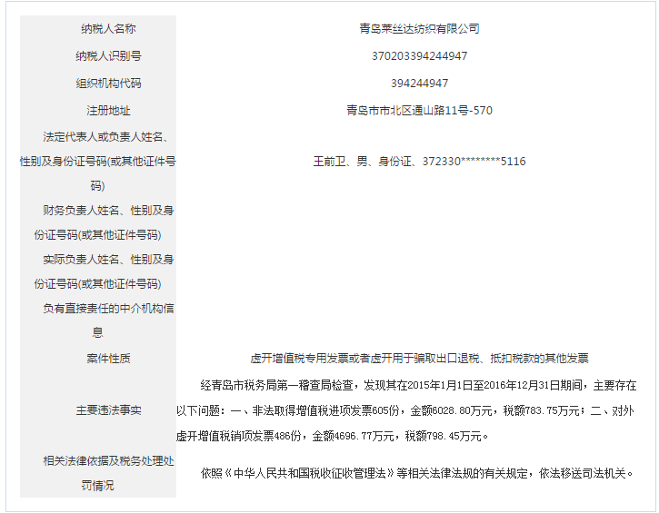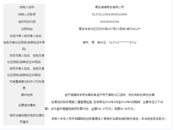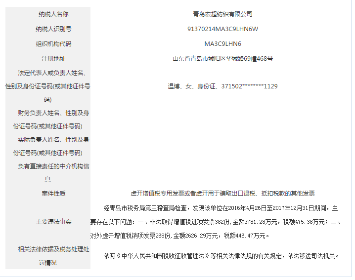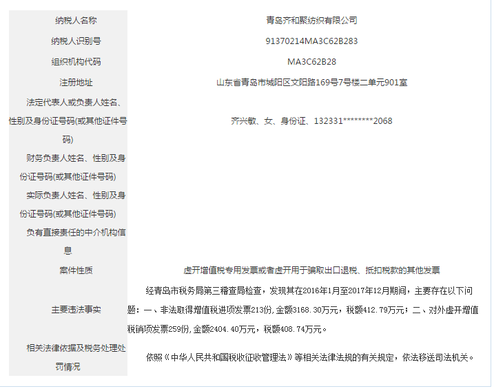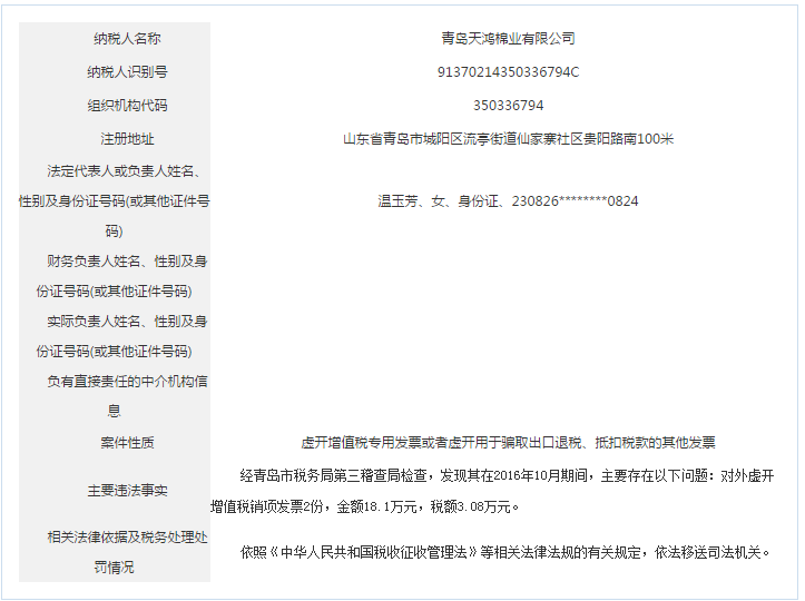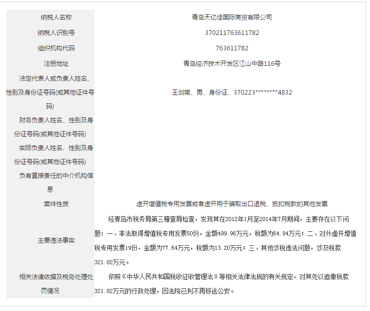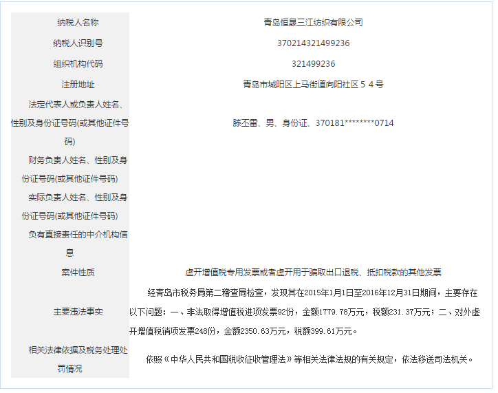 青岛税务局公告青岛鑫宝来钢铁有限公司等59起重大税收违法案件