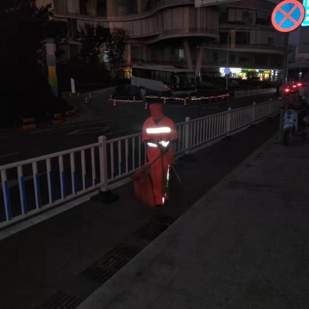 本次活动正值馆陶路德国文化周期间,市北环卫一公司在全力保障德国商品展销会夜间环境卫生保洁的同时,又抽调多名一线作业人员前往邮轮母港,保障邮轮港路、新疆路、邱县路、长安路等多条道路环境卫生。一线作业人员分批次,分别于晚6点和晚7点到岗,开展保洁工作。