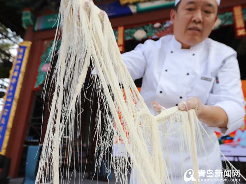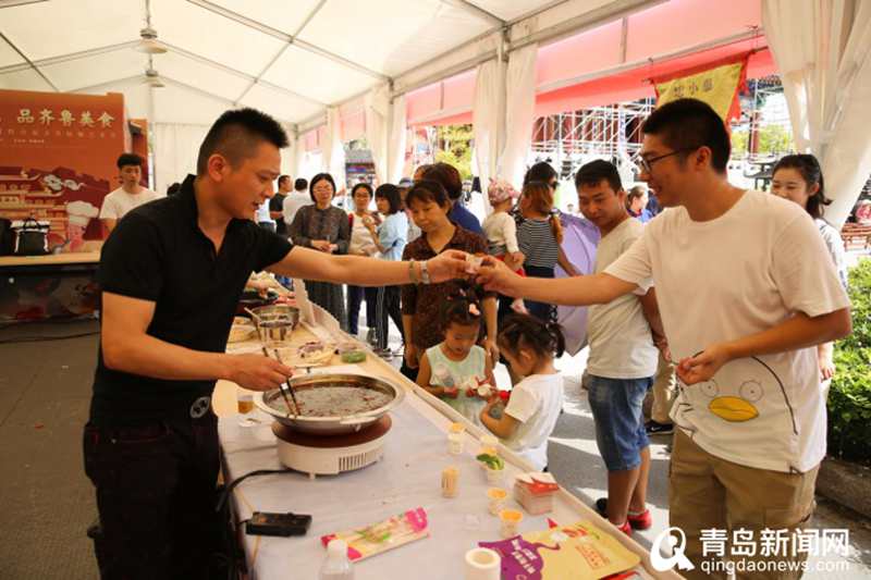 整个开幕式活动亮点不断、精彩纷呈,既有源自春秋战国时期的孔府菜燕礼表演,又有《鲁菜》纪录片片花首次公映,多位鲁菜烹饪大师上演了快速雕花、蒙眼剔布袋鸡、拉面等“绝技绝活”,让现场的观众大开眼界。吃的方面就更目不暇接,在古城的绿色食材展、特色小吃一条街上,来自全省16市的地域名吃、网红小吃琳琅满目,专门从重庆邀请的特色餐饮企业带来了地道的重庆小面,麻辣鲜香的味道令人馋涎欲滴。“济南菜、孔府菜、胶东菜……这下可以一站式尝遍鲁菜了!”来自江苏扬州的徐先生一家三口都是“吃货”,来即墨古城旅游意外赶上“齐鲁金秋美食月”开幕很是惊喜,一家人前一天刚爬完崂山入住在古城君澜酒店,原本打算第二天离开青岛,为了吃遍古城美食一家人决定多住两晚再回江苏。