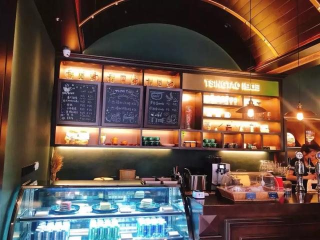 墨绿色的墙面,和啤酒瓶的颜色一致。现下最流行的国潮装修风格,在享受美味的同时,还贴心准备了各种青岛主题风格的印章。在这里,可以给家人和爱人寄一张有意义的明信片。