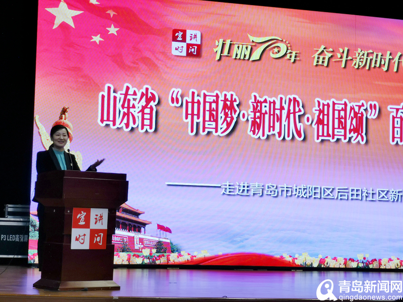 本次百姓宣讲团走进城阳区后田社区,宣讲团的8名宣讲员都是从全省不同行业、不同岗位的优秀宣讲员中层层选拔出来的基层优秀百姓代表。宣讲员们紧紧围绕庆祝新中国成立70周年这条主线,用朴实的话语,切身的感受,讲述着感人事迹,传扬着动人故事,传递着梦想的力量,展现了广大党员干部群众在党的领导下,创造着不平凡的业绩,也展示了平凡而又伟大的普通百姓为实现中国梦而努力拼搏的良好精神风貌。