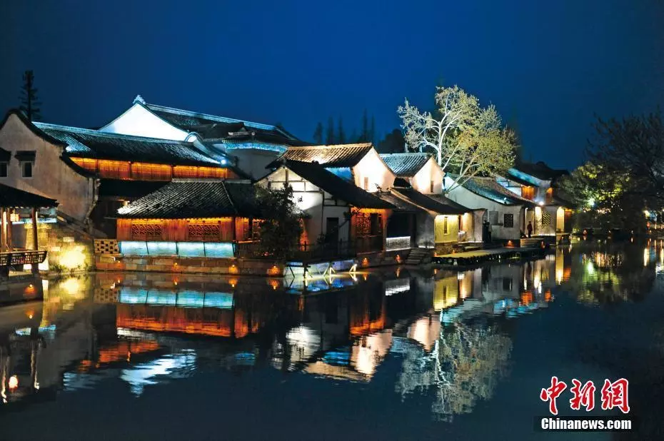 当夜幕降临,景区的泛光照明一一亮起,古朴的乌镇也“化身”成为一个全新的梦幻世界。