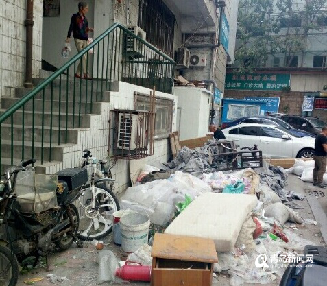 3.市北区四流南路26-8号万象新村附近,积存垃圾。