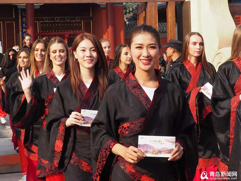乱花迷人眼!67名世界旅游小姐聚即墨古城 中国文化俘获芳心