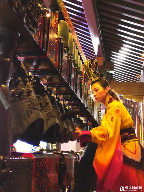 在古城学宫,佳丽们欣赏了古典庄重的编钟、编磬演奏。低音浑厚,高音明澈,优美而动听的《阳关三叠》《竹枝词》《友谊地久天长》似一阵清风,让人回味无穷,深深感染了现场的佳丽们。