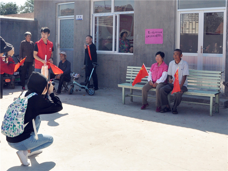 活动还为村里70周岁的共和国同龄人拍摄了家庭照,老人非常满意。