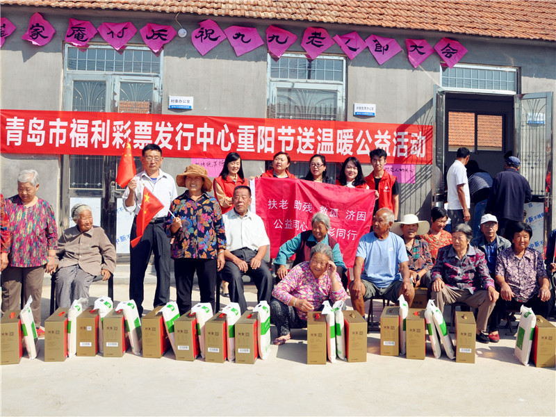 青岛市福利彩票发行中心走进即墨区灵山镇崔家庵村举行重阳敬老活动。
