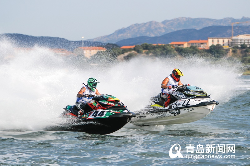 国际顶级赛事:三大类别四个组别 选手驾驶摩托飞驰海面