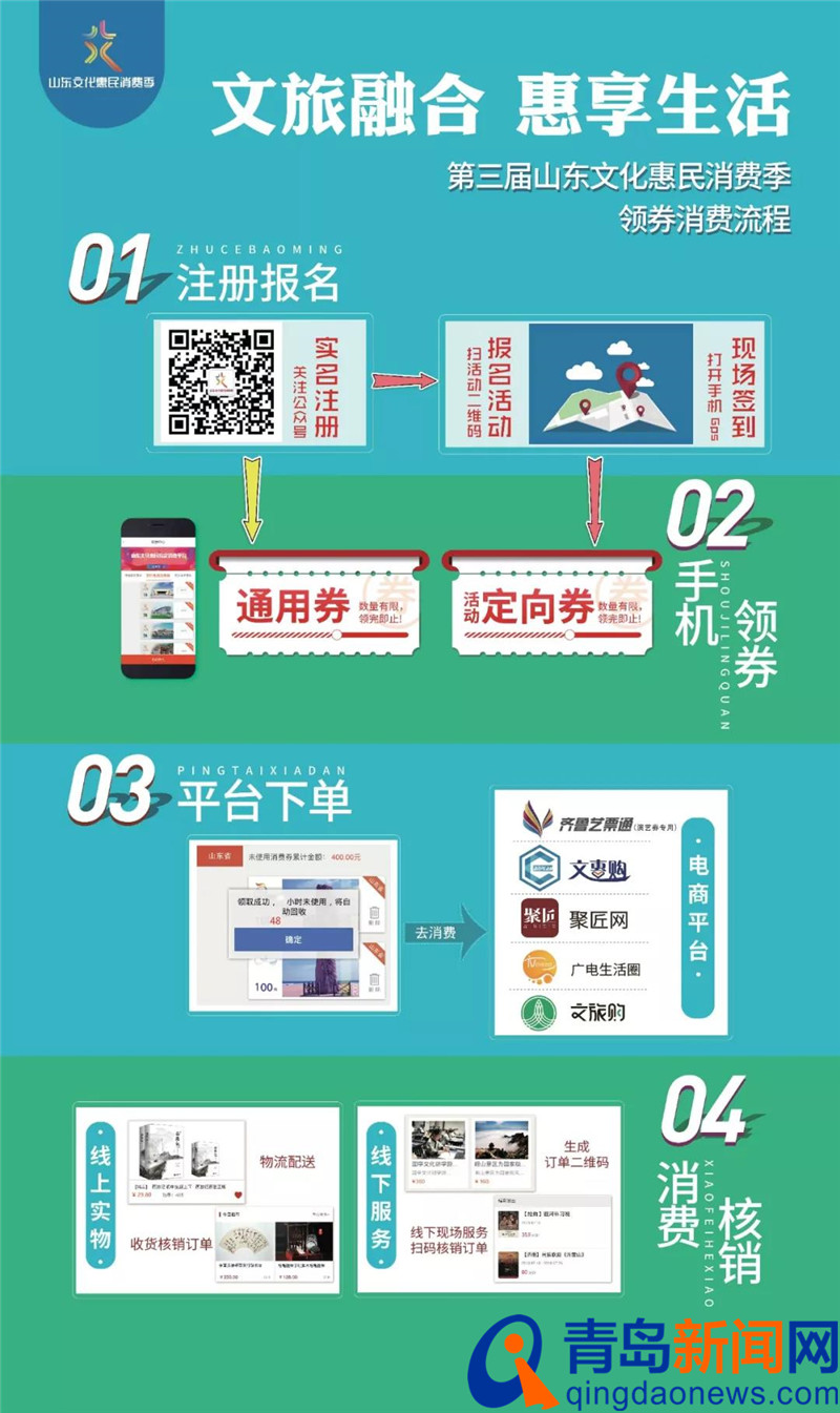 定向券将在10月12日、13日向公众发放,届时可通过现场扫码打卡领取活动定向券。现在扫描下方流程图二维码完成相关注册可提前领取文化惠民节通用券。补贴优惠券数量有限,抓紧时间领取吧!