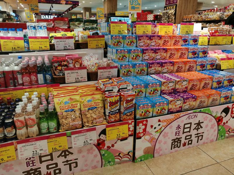 为了配合活动的展开,青岛永旺东部店还在店内推出众多知名日本品牌商品系列的特卖活动包括日本的各类小食品、饮料调味品等,品牌有Calbee、北陆制果、好侍、丸江、日本播州、哈达牌饮料、卡乐比斯,在价格上也有不同的优惠。