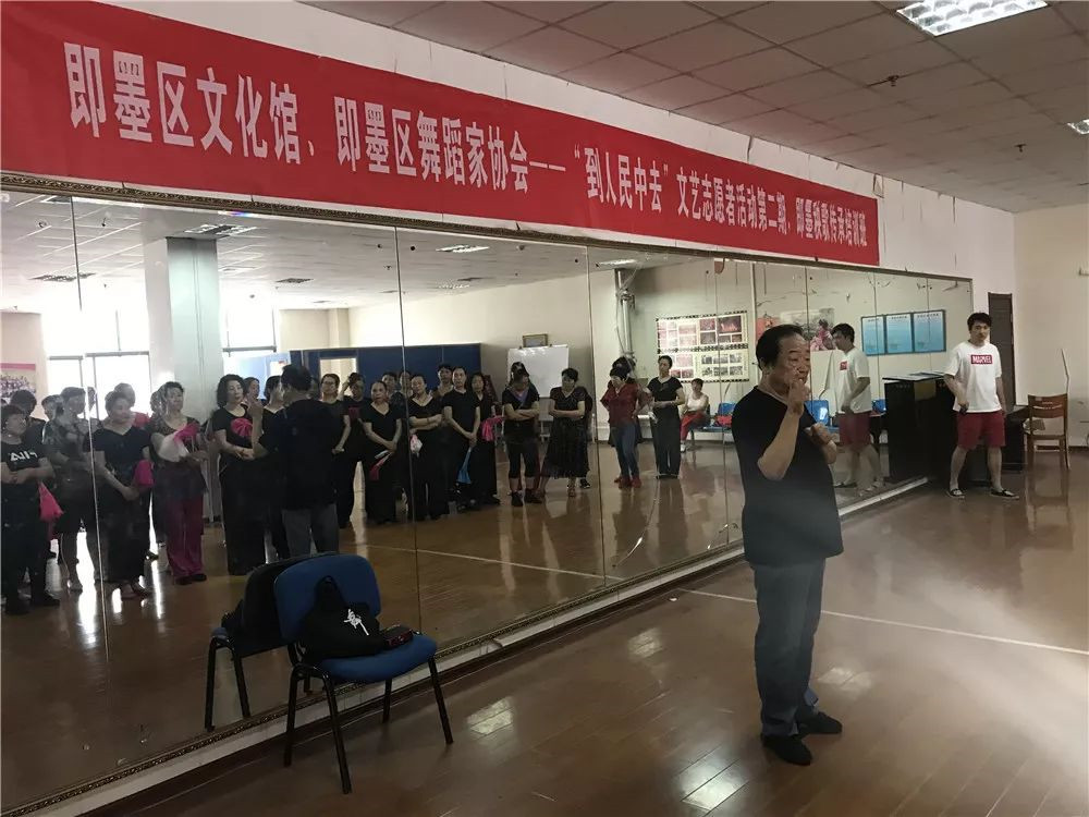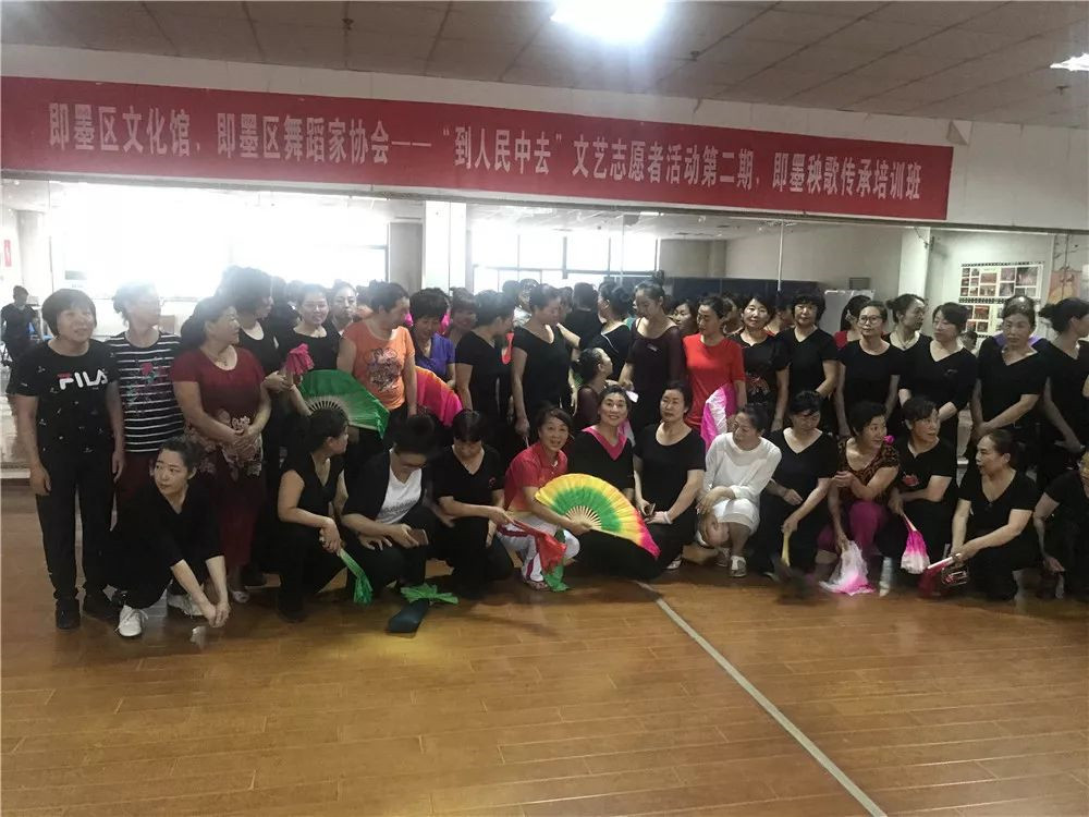 结合全区各类大小活动,定期举办举办舞蹈、声乐公益培训班、完成对正月十五民舞踩街、欢乐广场周周演、广场舞大赛、唱响即墨等大型文化活动的排练与辅导,辅导人数达1万余人次。开设了2019年健康养生舞蹈公益培训班活动、2019年“即墨秧歌”舞蹈公益培训班、开展新编《青岛市广场舞》培训班,来自全区各镇、街道及社区文艺骨干200余人参加了培训,获得良好社会反响,培训活动是即墨区文化馆“送文化下基层”系列活动之一,在推广过程中首先培训文艺骨干,采取以点带面的方法,同时按照“请进来,走出去”的工作原则,城区街道采取文化中心统一集中培训,较为偏远的乡镇采取下派舞蹈干部深入基层定点培训,培训工作贯穿全年。