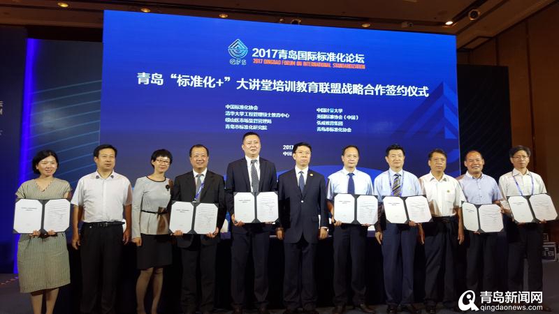 2017年6月28日,由中国标准化协会、英国标准协会、中国计量大学、清华大学、青岛市崂山区市场监管局、弘成教育集团、青岛市标准化研究院、青岛市标准化协会等八家单位代表在青岛香格里拉大酒店签订了《青岛“标准化+”大讲堂培训教育联盟战略合作协议》。八方签约,为青岛的标准化人才培养培训注入新鲜的血液,从而促进青岛标准化事业迈上新台阶!