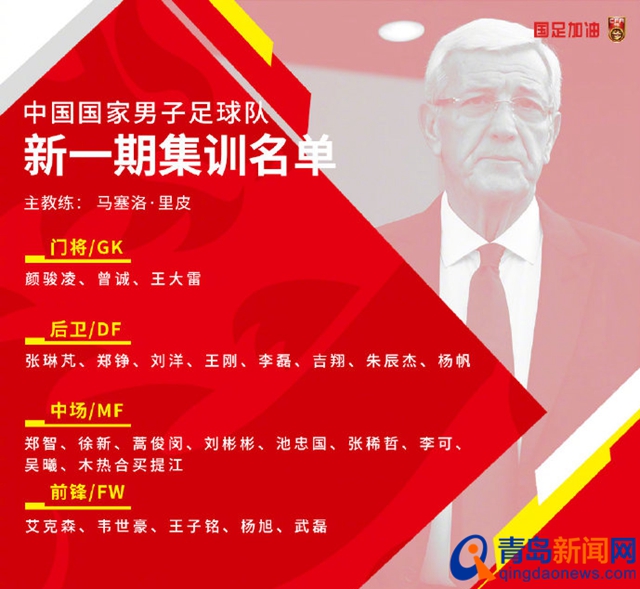 青岛新闻网10月30日讯(记者:孙忠晓)昨天下午,中国足协官方发布了最新一期国足集训名单,在25人的大名单中共有三位青岛籍球员入选,分别是北京中赫国安队的王子铭、李磊和山东鲁能队的刘洋。按照计划,里皮将率队11月3日在广州集中,随后前往阿联酋参加2022卡塔尔世界杯亚洲赛区预选赛40强赛第5轮的比赛,迎战叙利亚队。