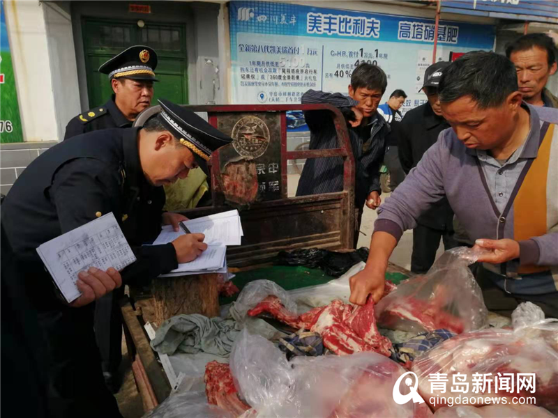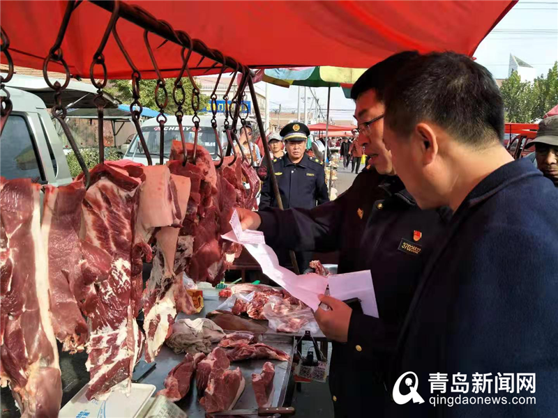 古岘集是方圆百里的农村大集,销售猪肉的摊点就有十几处,售卖猪肉的质量安全与村民的饮食健康息息相关。近日,正逢古岘大集,为了确保检查的顺利进行,中队联系了平度市农业执法大队、市定点屠宰办、古岘动检站等工作人员集中行动,出动车辆3台,执法人员11人对古岘大集猪肉零售摊点经营情况开展了专项执法检查。