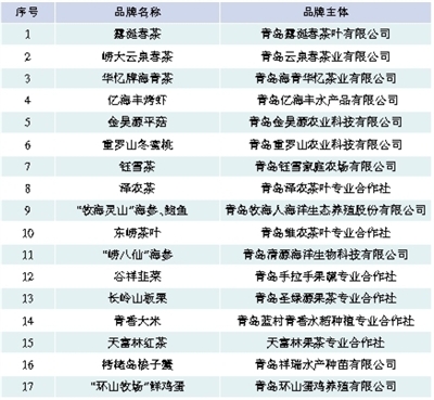 青岛三部门联合公布第四届青岛知名农产品区域公用品牌和知名农产品品牌名单