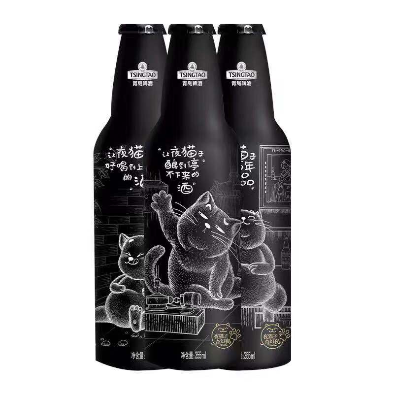 今年青岛啤酒夜猫子啤酒除了升级瓶身设计风格之外,新增三条个性文案:让夜猫子迷了百年的妙品、让夜猫子酿到停不下来的酒、让夜猫子好喝到上天的酒,配合瓶身软萌的夜猫形象,透出夜猫的优雅与随性,越夜越迷人。