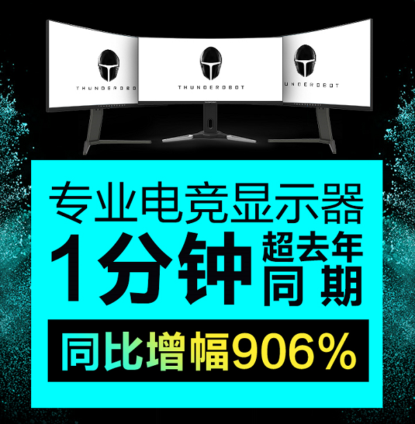 随着雷神在专业电竞显示器领域的不断发力,双十一期间取得了让人惊喜的成绩!专业电竞显示器仅用了1分钟,就超过了去年双十一整体销售额,在其它品牌的围攻之下突围而出,同比增幅906%!