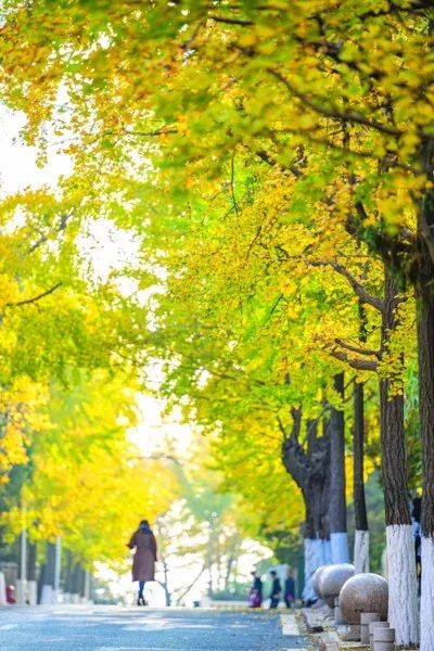 这个时间到太平角去赏景最应该去哪个位置?自然是以银杏树著称的湛山三路。八大关的银杏观景道以幽静典雅著称,道路都不算长,在树林中赏景会有曲径通幽的感觉。而湛山三路却不太一样,这里的银杏树段长达四百多米,道路笔直且呈高低不同,两侧的银杏树较为茂密,看起来空间透视感更为强烈。
