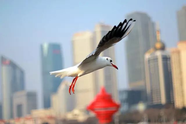 这个季节看到的海鸥多是红嘴鸥。它们从夏季的7月末陆续来到青岛,会一直待到来年的4月。