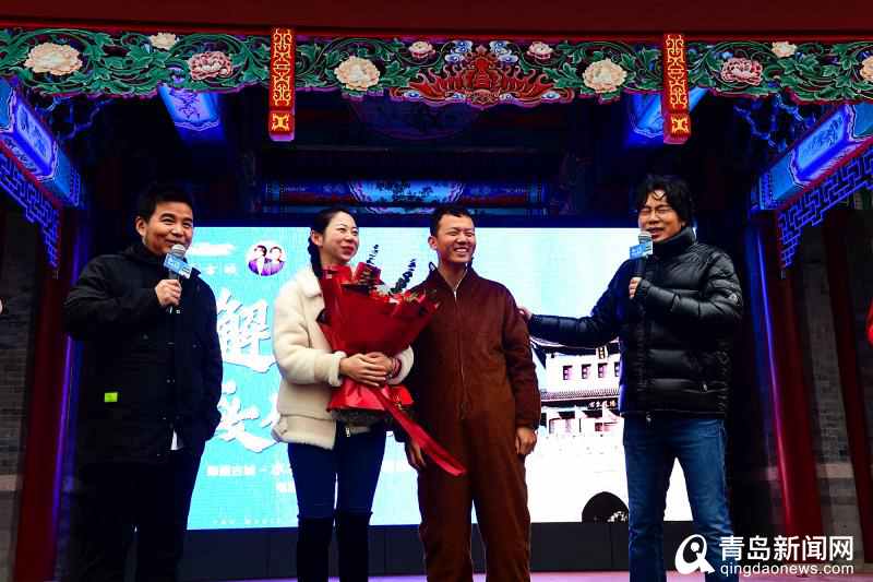 在古城戏台,“嫁给他!嫁给他!”大喊声中,一名女生激动得点头同意男生求婚。“水木年华”,为新人送上爱情祝福,并演唱了《一生有你》……“水木年华”还动情演唱了一首《在他乡》,并表示将参加2020年即墨古城民谣季开幕式。县衙广场,女子水晶乐坊激情演绎琵琶、二胡、笛子等传统乐器,古装表演快闪舞蹈《盛唐夜唱》古意盎然;即墨古城庞客酒吧驻唱乐队带来劲爆新潮的歌曲;身着时髦婚纱的模特表演了时尚婚纱走秀……