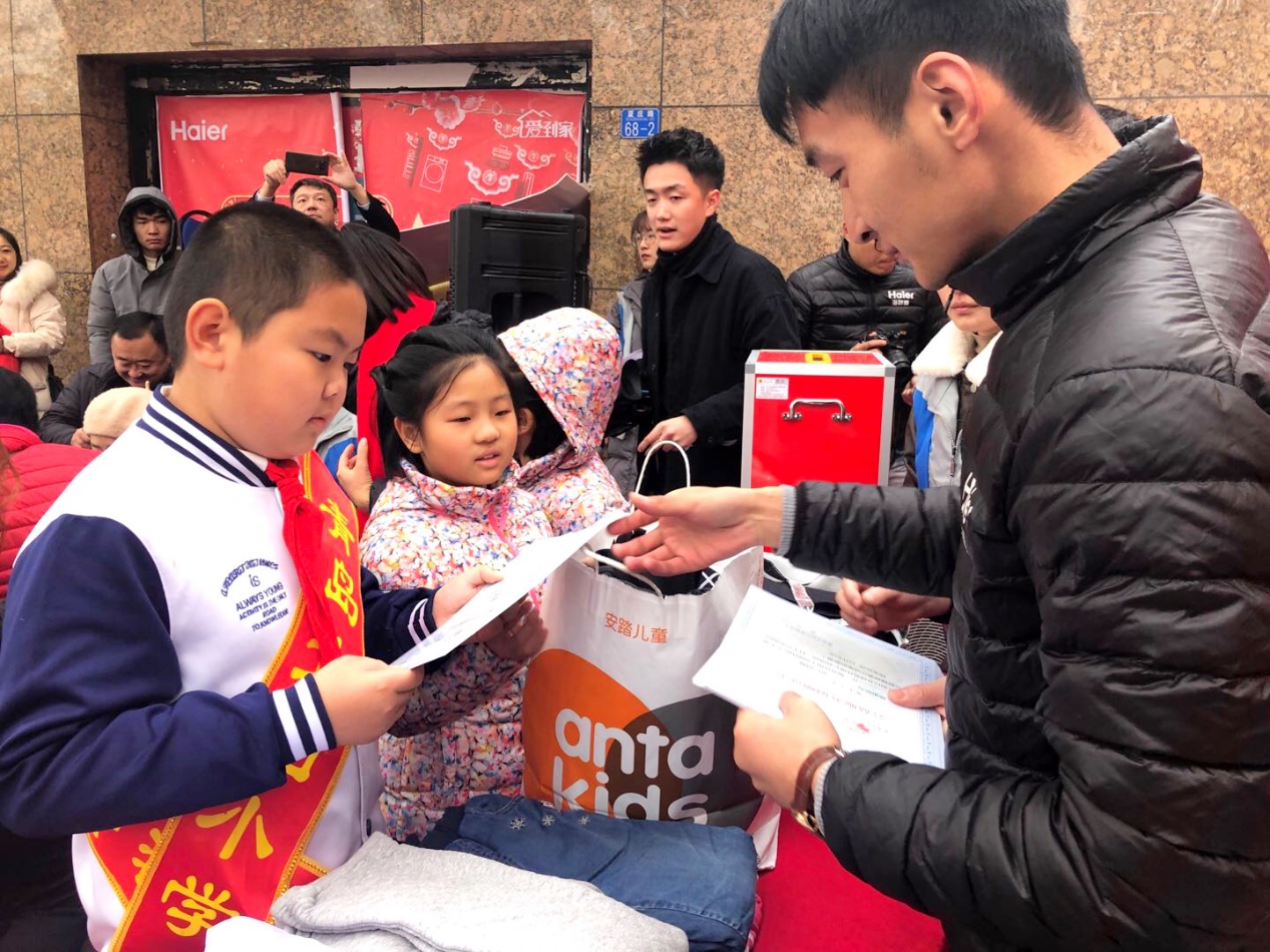 活动现场为五家海尔专卖店进行了爱心授牌仪式,一位少先队员作为学生代表向大家发起了爱心捐赠倡议,随后,在工作人员的主持下,爱心人士和小学生们现场进行了爱心捐赠,一位海尔的工作人员表示,所有的捐赠衣物都会经过卡萨帝空气洗精心清洗处理后,再统一捐赠给贫困山区,保证受捐衣物能干干净净的送到贫困山区的小朋友手中。