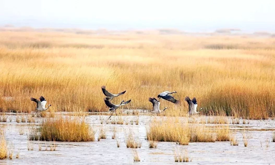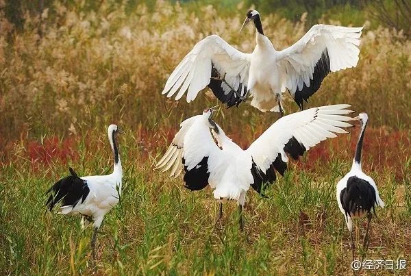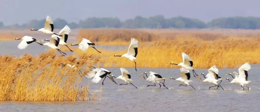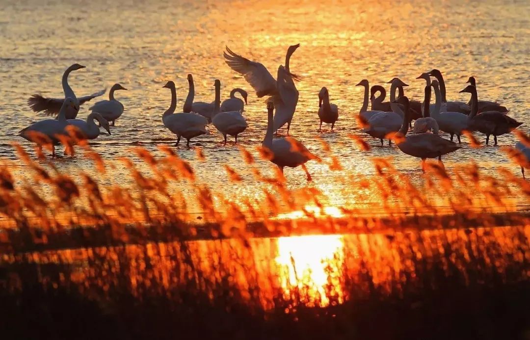 在这里,看丹顶鹤、白天鹅、黑鹳、白琶鹭等珍禽鸟类在宽阔的沙地浅滩或芦苇丛中,优雅自在地嬉戏生活;群鸟齐飞,叫声热闹婉转,令人震撼惊叹。这“中国东方白鹤之乡”绝不是徒有虚名!