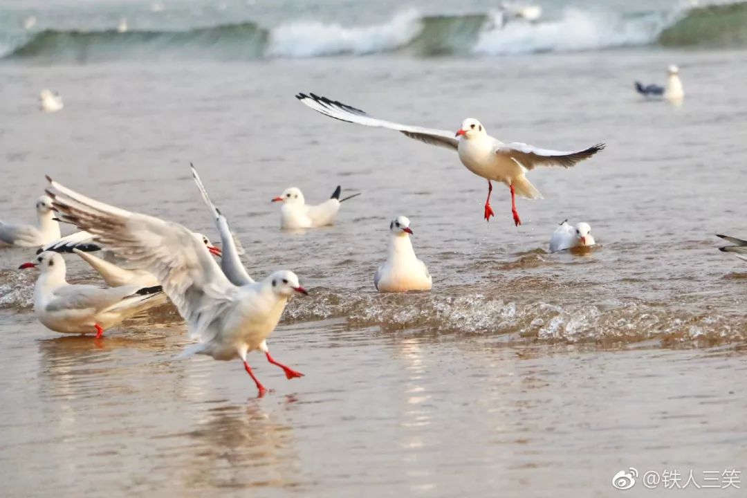 小巧可爱的红嘴鸥,或“呆萌”地站在浅滩张望,或随着海浪慢慢漂浮,或站在海边栏杆上观察人们的生活,一只只乖巧可爱,惹人喜爱。看起来很弱小,却拥有着不寻常的毅力与坚韧,看着这些充满活力的小生灵,冬季的海边也变得热闹了。