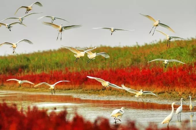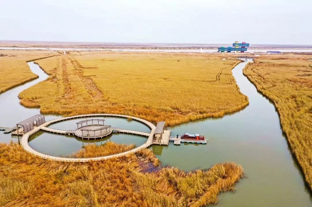 位于黄河入海口附近的东营黄河口湿地,美景如画:一望无际的芦苇,在冬日下泛着温暖的金黄;艳红的碱蓬,像红宝石一般璀璨……这里被称为鸟类的“国际机场”,是迁移候鸟的天堂。