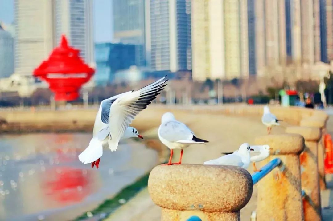 冬天,在青岛栈桥畅快飞翔的海鸥群,是青岛冬季一道亮丽的风景线。每年冬天,上百只作为青岛“老朋友”的红嘴鸥,从西伯利亚千里迢迢来到青岛过冬避寒,吸引大量的游客前去观赏喂食。这也是青岛冬季旅游的标志之一。