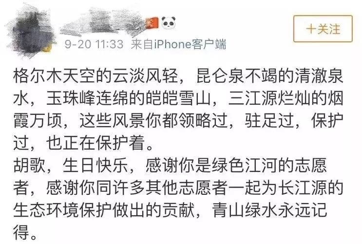胡歌曾在朋友圈写道: