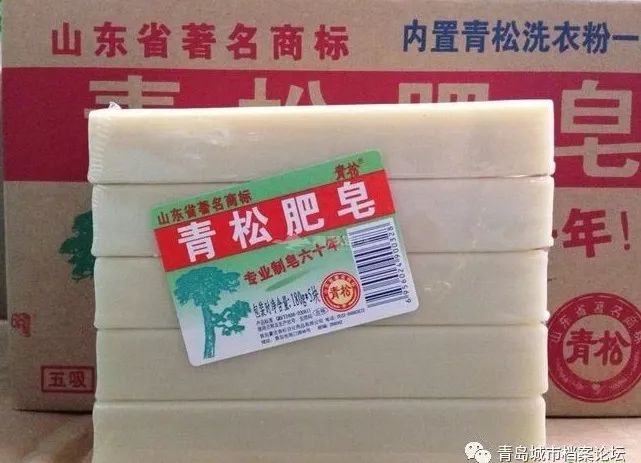 上世纪50年代到70年代出生的青岛市民,大都对青松肥皂有着深厚的感情,后来虽然渐渐淡出了我们的视线,但它那种清新的味道,朴实的外表却永远镶嵌在了老青岛的记忆中……直到今天,虽有大量洗化用品可选择,但还是有不少人依然使用着这个老牌子。