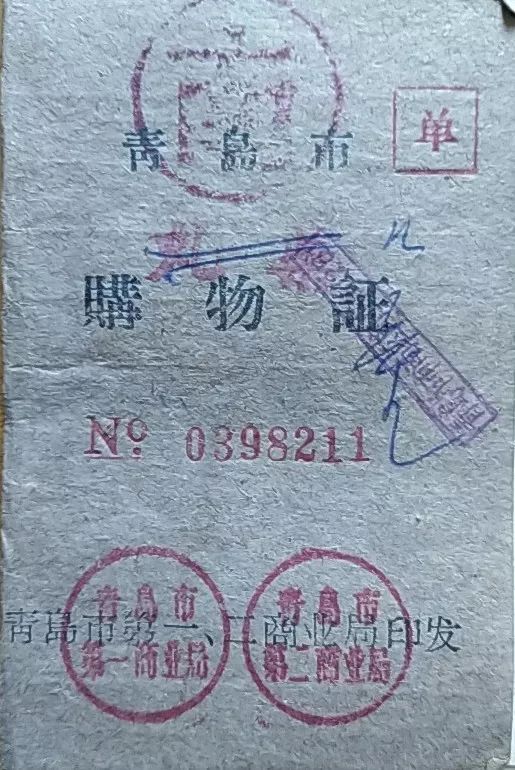 上世纪60年代青岛购物证,其中可见购买肥皂也需要凭证审核。
