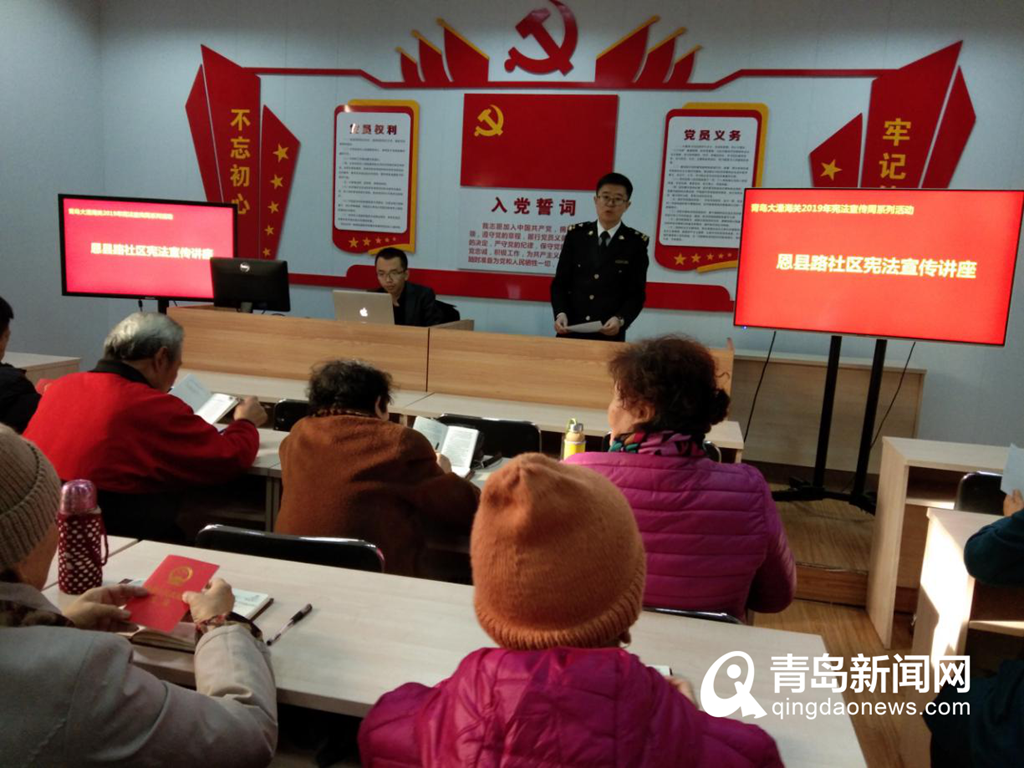 当天,青岛大港海关法制一科副科长、二级主办闫振国,法制一科二级主办张涛,大港海关法律顾问单位山东琴岛律师事务所律师沈彦敏等来到了即墨路街道恩县路社区会议室,从讲解宪法知识条例、现下违法宪法重点案例等方面,深入浅出地给社区的老党员们上了一堂宪法宣传专题讲座。大家听得很认真,不时发起提问,现场气氛很热烈。