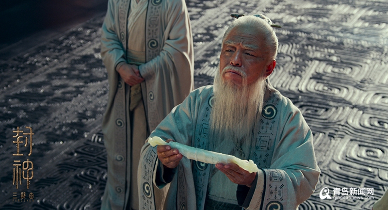 姜子牙(黄渤饰)龙德殿献封神榜。