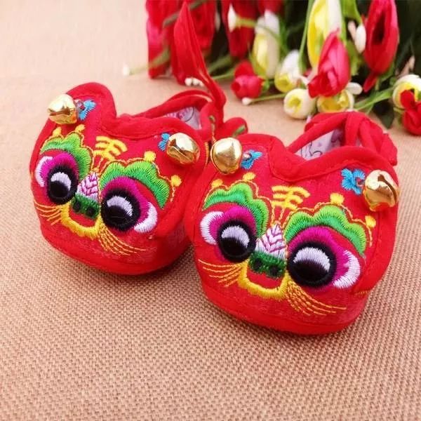 古时送给男孩的鞋面上多绣着狗、虎