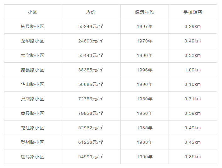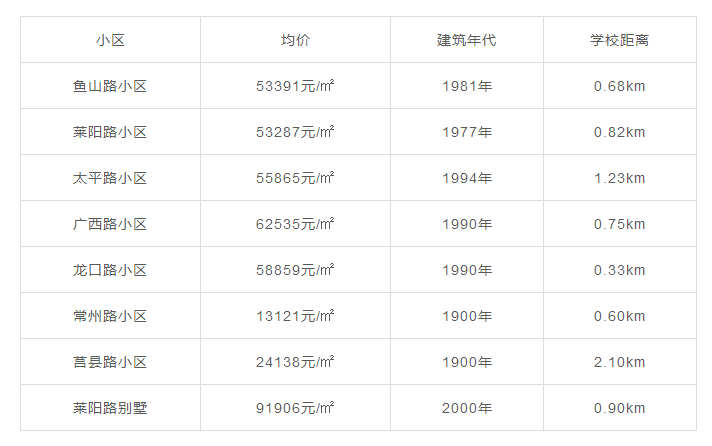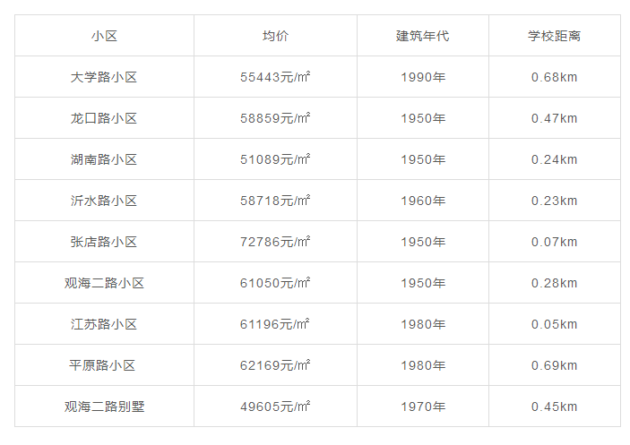 青岛八大峡小学始建于1992年,位于青岛市市南区西部。【学区房价格】18152元/㎡- 42137元/㎡1985年建校,青岛基隆路小学位于市区东部――香港中路,紧临2008年奥运帆船比赛场馆【学区房价格】:27634元/㎡- 96354元/㎡德县路小学创建于1900年,位于青岛德县路14号。【学区房价格】:22879元/㎡- 94218元/㎡青岛敦化路小学始建于1985年,前身是西吴家村小学【学区房价格】:16625元/㎡- 30035元/㎡四方实验学校创建于1994年,先后获得了山东省规范化学校、山东省德育先进单位等称号,在老四方区小有盛名。【学区房价格】:19442元/㎡- 28066元/㎡青岛鞍山路小学始建于1956年,是一所市级规范化学校。【学区房价格】:18803元/㎡- 25532元/㎡桦川路小学我校位于市北区东部,西临辽源西路,坐落在洪山坡小区内。【学区房价格】:16155元/㎡- 49075元/㎡李沧区实验小学是李沧区的干部子弟学校,始建于1988年,是李沧区规模最大、教学质量最好的小学。【学区房价格】17355元/㎡- 26926元/㎡青岛金水路小学始建于1995年,校园占地2、66公顷,环境优美,是一所绿色花园式学校。学校拥有一支热爱教育事业、素质优良、业务精湛的教师队伍。【学区房价格】15971元/㎡- 22827元/㎡学校于2003年9月10日正式挂牌成立。学校先后获得青岛市规范化学校、青岛市艺术教育示范学校等荣誉称号。发现没有,好学校周边的小区都很贵!很贵!很贵!不过,有了好的优质资源,以后还是得靠孩子自己的努力!如果对学区房或者楼市有其他看法,评论区一起探讨吧。