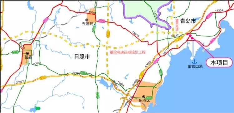 董家口至沈海高速段项目主线采用双向四车道高速公路标准,设计时速120公里,整体式路基宽度27米,分离式路基宽度13.25米,共设置大中桥及分离式立交桥梁7座、涵洞5道、通道3道、天桥1座、互通立交2处、主线收费站1处。