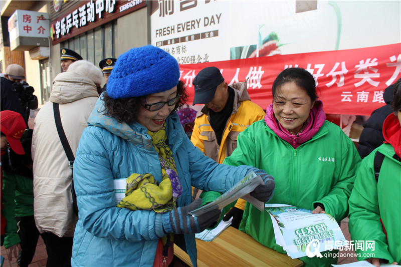 青岛新闻网12月29日讯 (通讯员 栾绍纲)备受社会关注的《青岛市社会垃圾分类管理办法》将于2020年1月6日施行。为了让广大社区居民更多的了解垃圾分类新做法,12月28日上午,市南区云南路街道组织云南路街道综合执法中队、云南路环卫站和各社区垃圾分类指导员到云南路悦喜客来购物中心门前进行集中宣传。