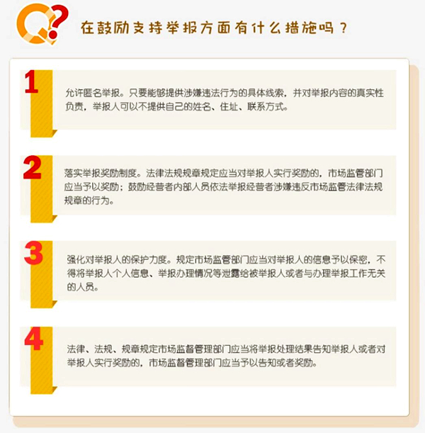 此外,《办法》第三十二条指出,法律、法规、规章规定市场监督管理部门应当将举报处理结果告知举报人或者对举报人实行奖励的,市场监督管理部门应当予以告知或者奖励。