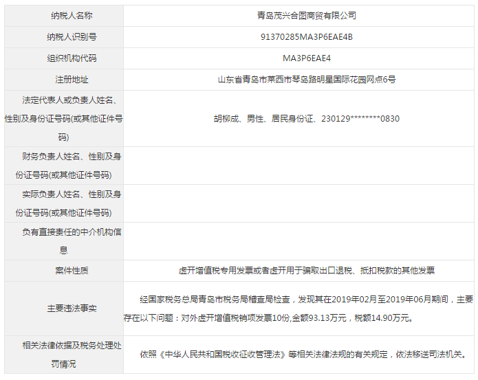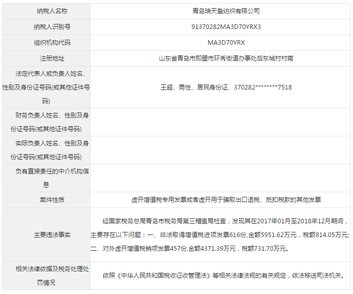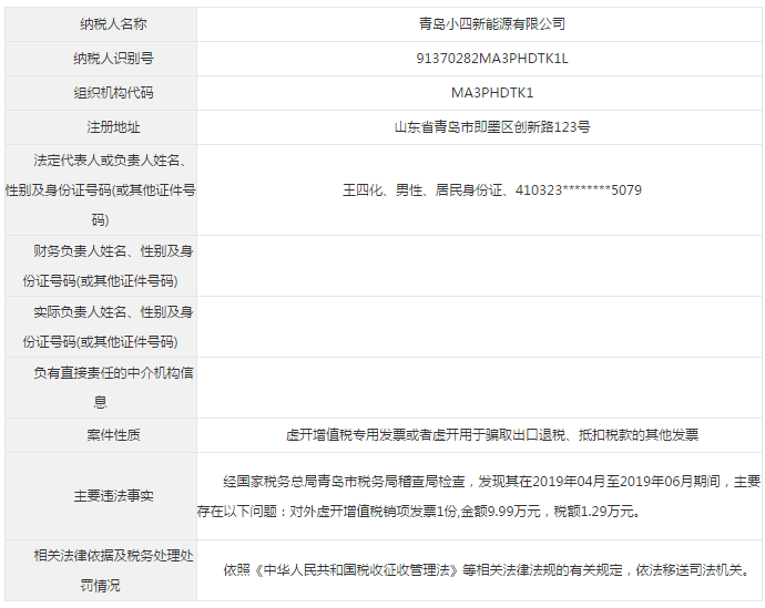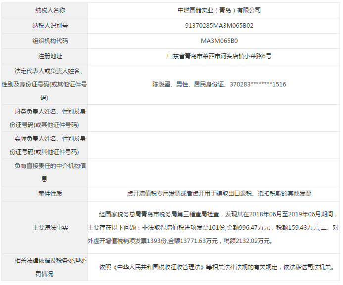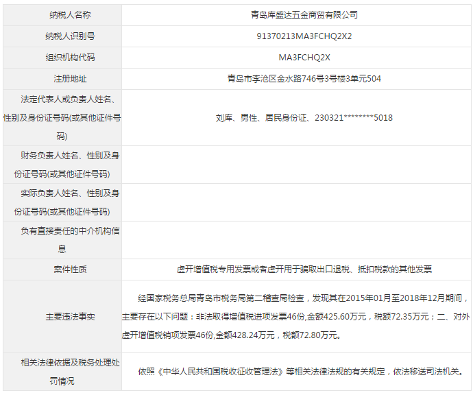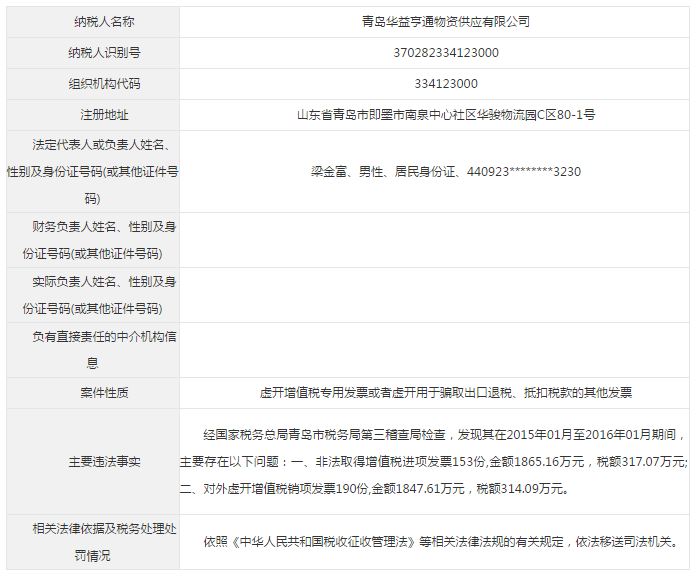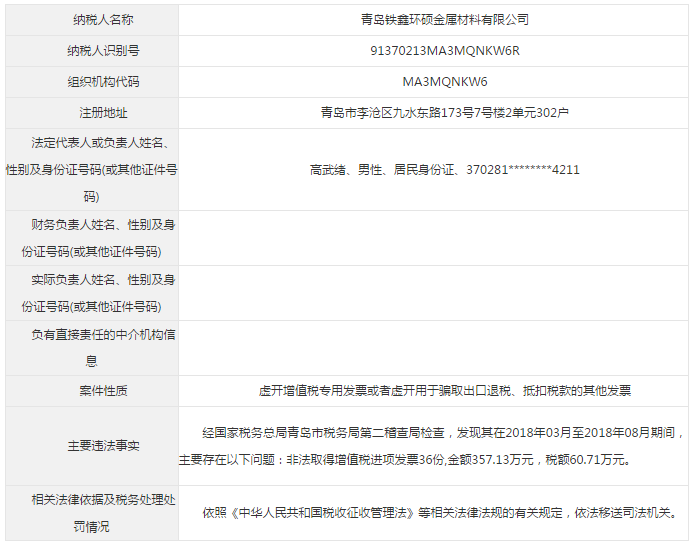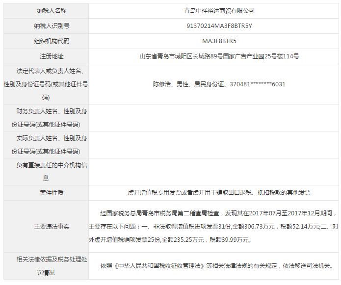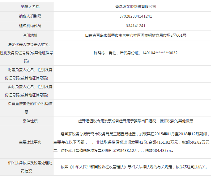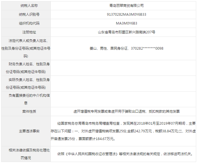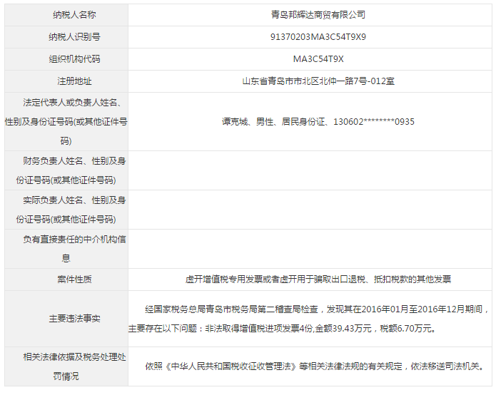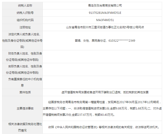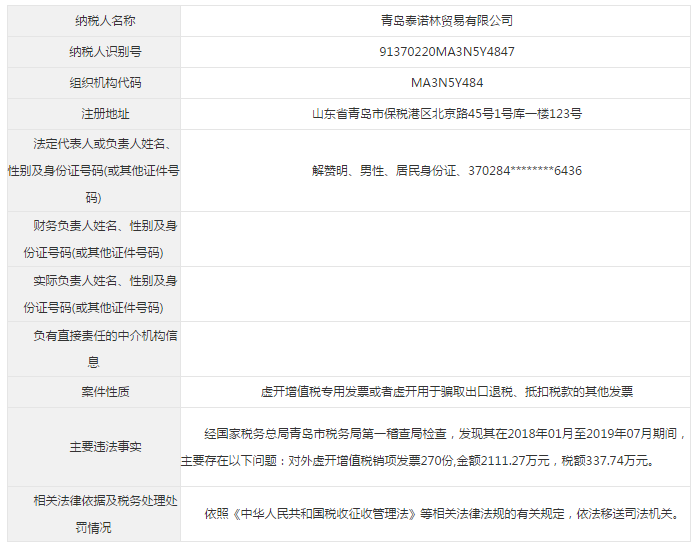 青岛税务局公告青岛占辉建筑工程有限公司等49起重大税收违法案件
