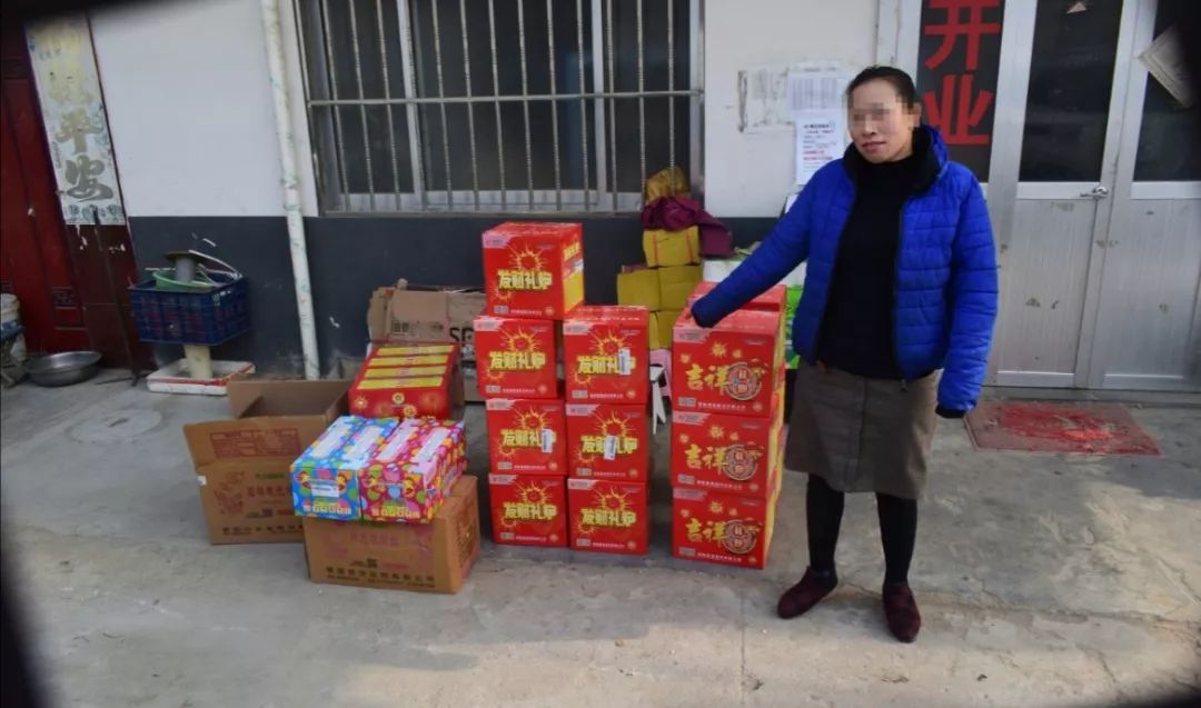 青岛西海岸新区的禁放区主要在城区,张家楼镇地处城郊结合部,因此张家楼派出所在开展禁放宣传的同时,将预防烟花爆竹流入禁放区作为工作的重中之重。1月3日上午,黄岛公安分局治安大队会同张家楼派出所组织警力到辖区内各村庄进行全面排查,当民警巡查到小北沟村的一家超市时,发现超市老板董某(女,47岁)神情极不自然,遂对其家中检查,在超市后院东屋发现几十箱礼炮和成盘鞭炮,而董某的超市并没有办理烟花爆竹经营许可证。经清点,董某非法储存了20箱礼炮,82箱鞭炮,另外还有2箱儿童玩的摔炮。