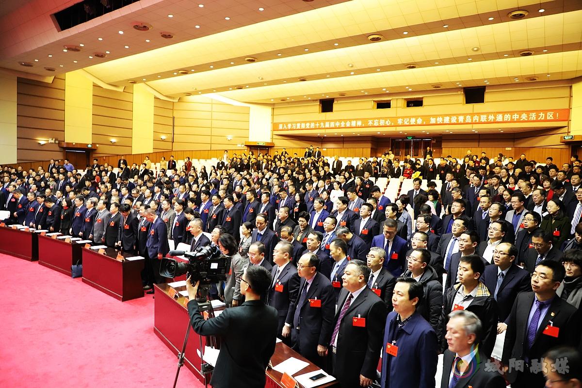 上午9时,城阳区人大常委会主任徐涛宣布青岛市城阳区第六届人民代表大会第四次会议开幕,全场起立,高唱国歌。