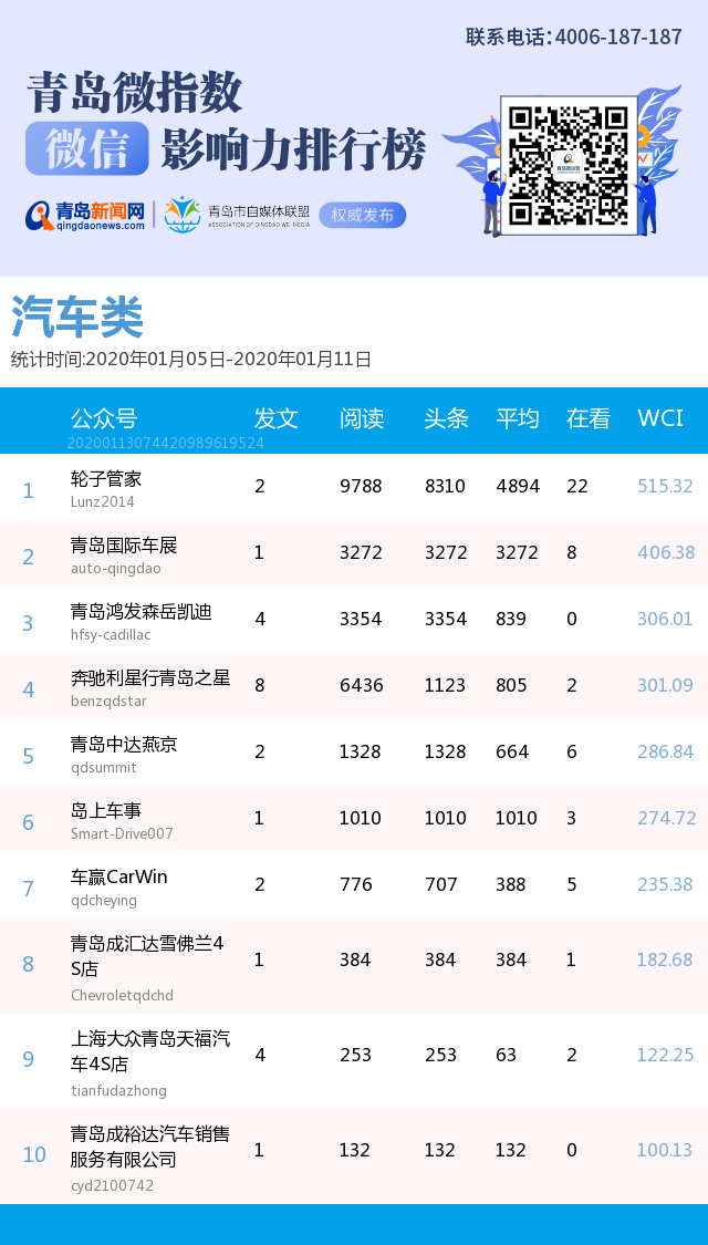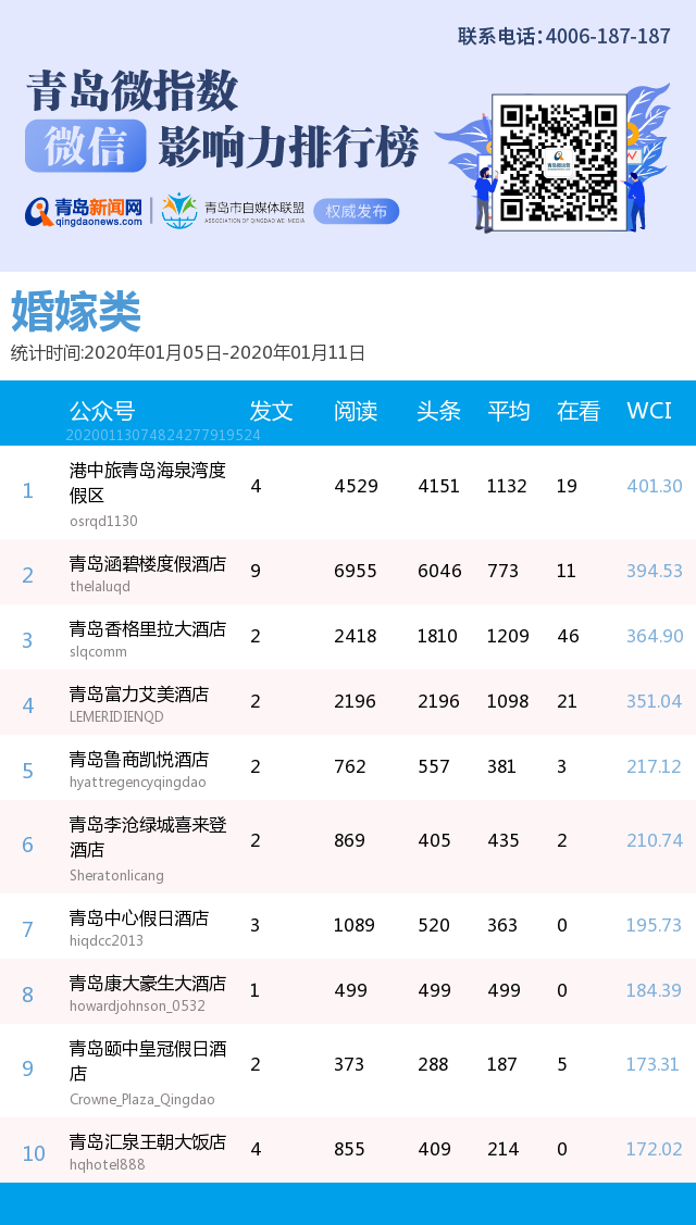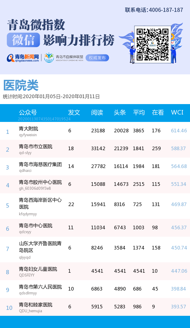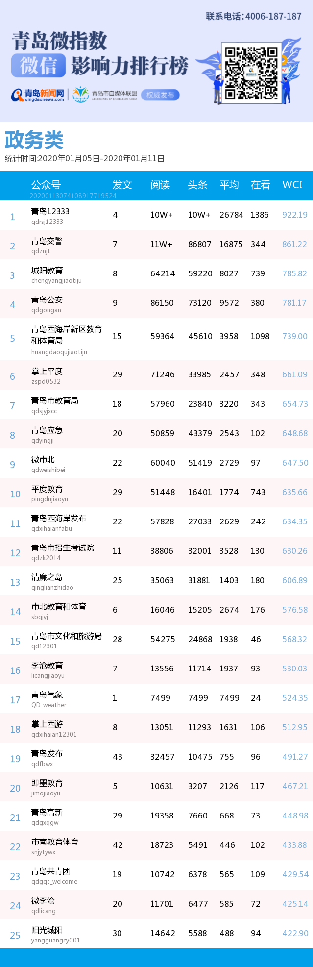 3、本次榜单收录了青岛14个行业微信公众号,如您的账号暂未收录,可联系4006-187-187。